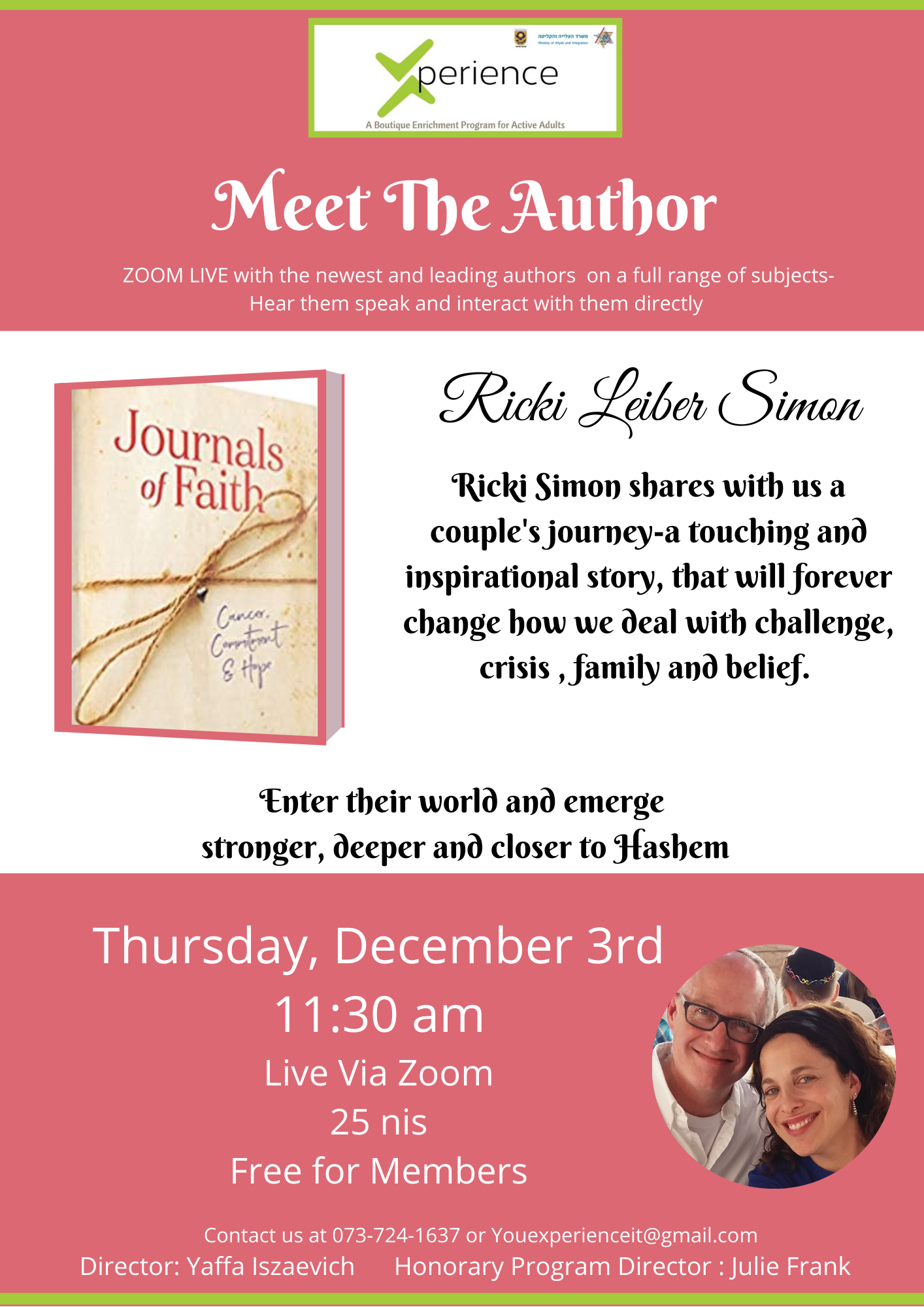 Ricki Simon shares with us a couple's journey-a touching and inspirational story, that will forever change how we deal with challenge, crisis , family and belief.
